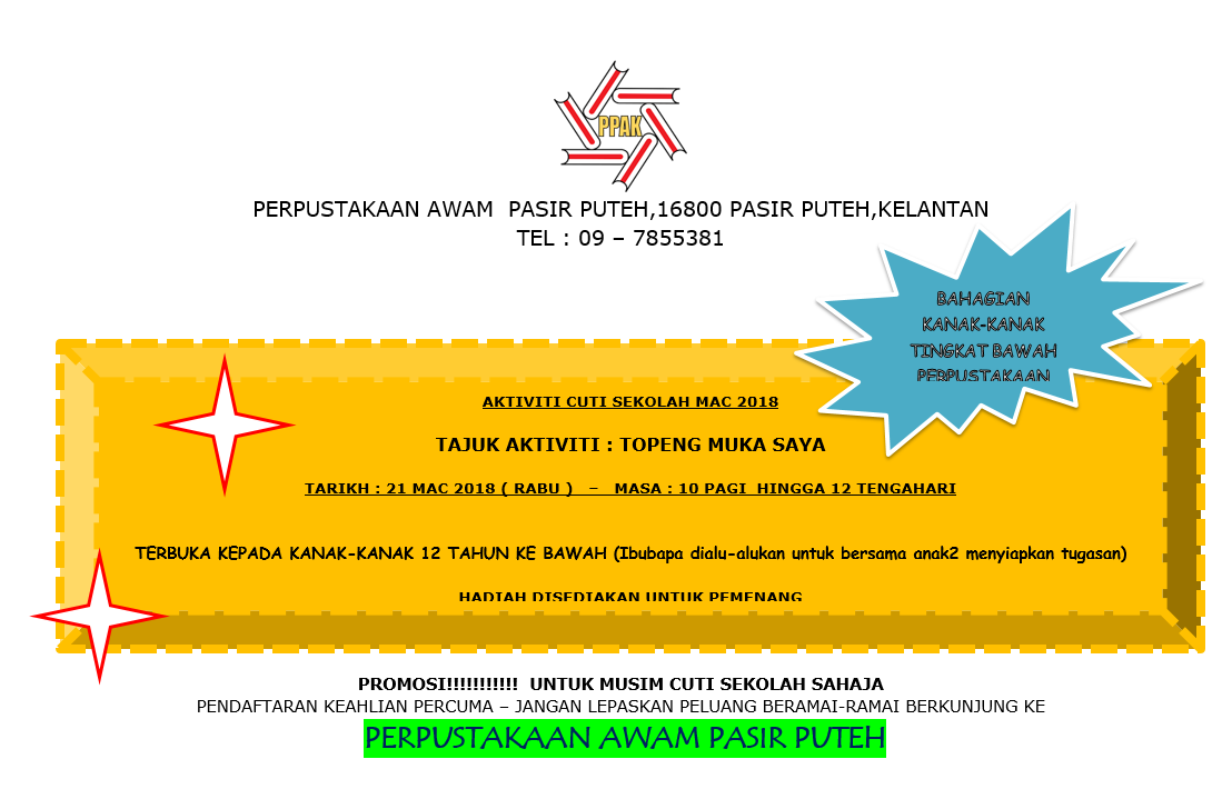 Riang ria cuti sekolah Mac 2018 - Perpustakaan Awam Pasir Puteh