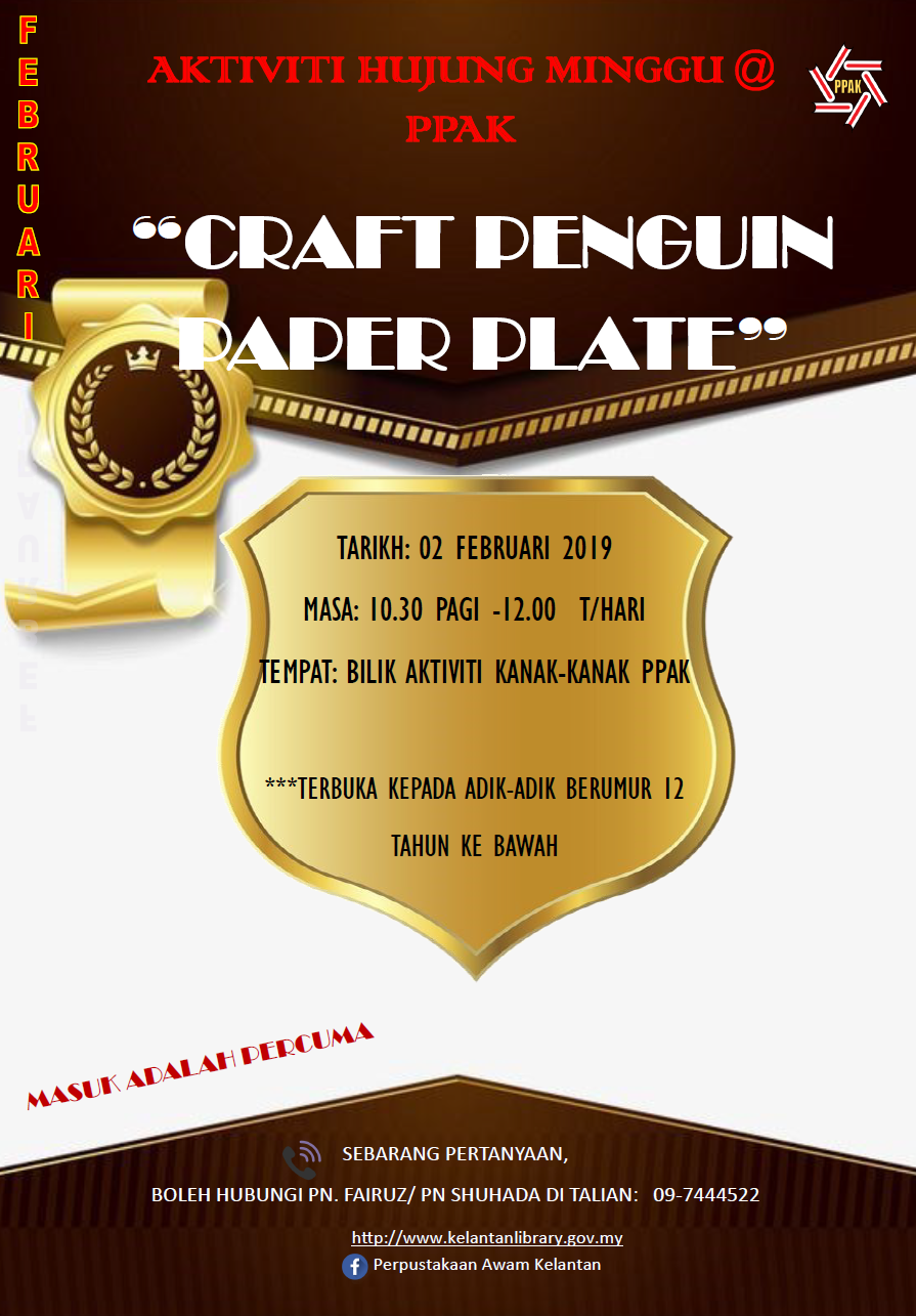 Aktiviti : Mingguan Sabtu Tarikh : 2 Februari 2019 Masa : 10:30 pagi hingga 12:00 tengahari Tempat : Bilik aktiviti, Perbadanan Perpustakaan Awam Kelantan