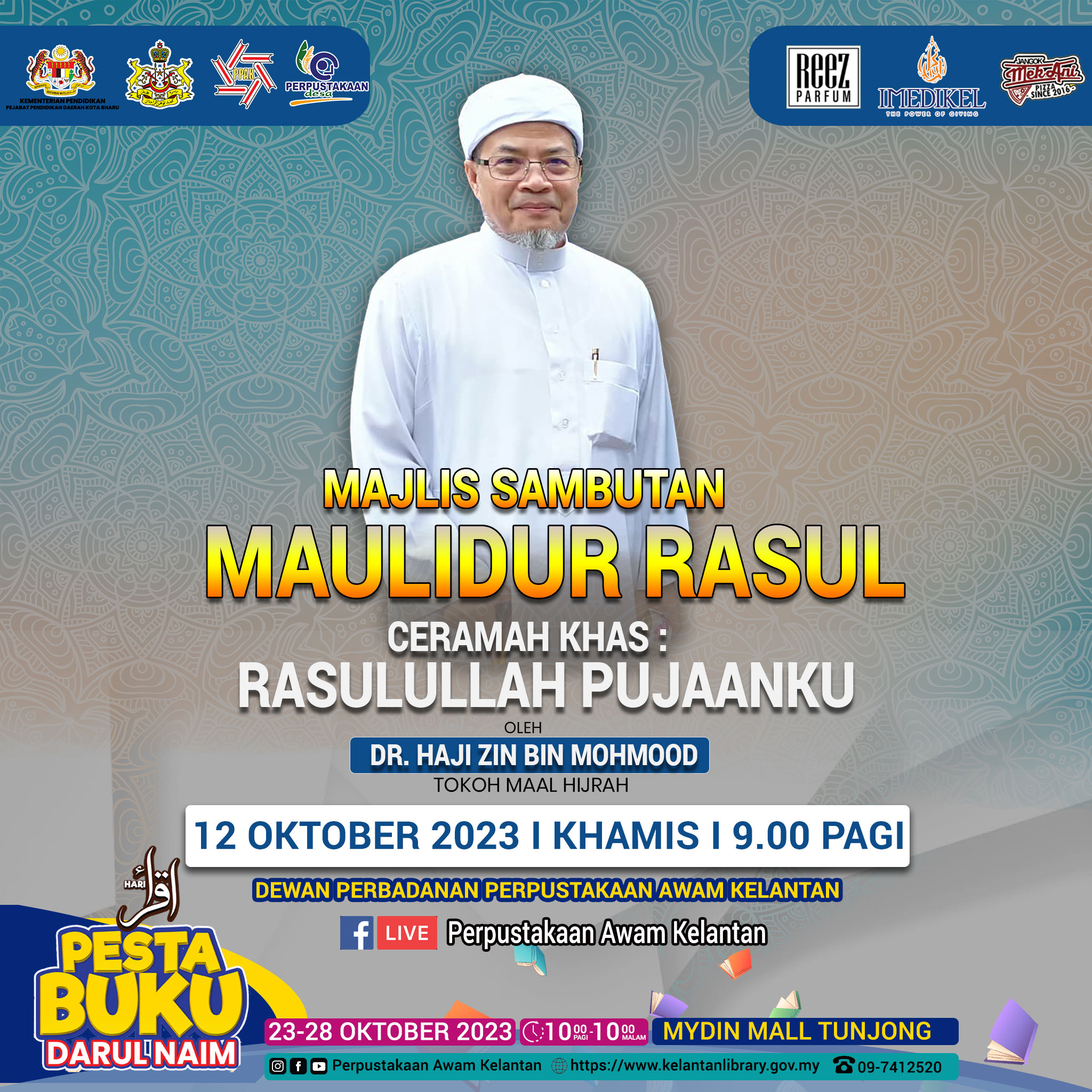 Tempat : Dewan Perbadanan Perpustakaan Awam Kelantan dan Secara Langsung di Facebook Perpustakaan Awam Kelantan