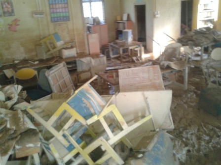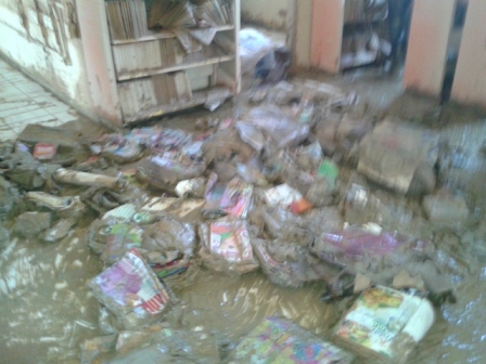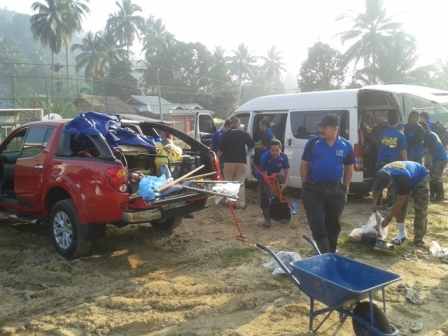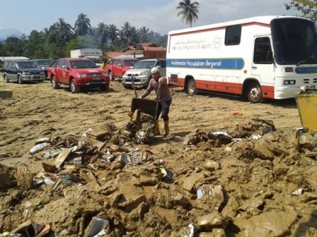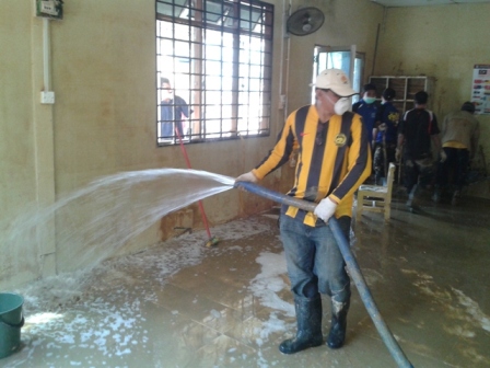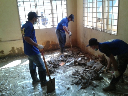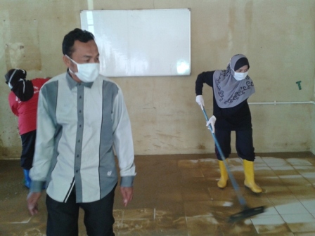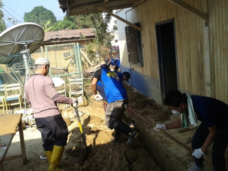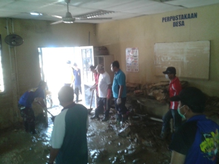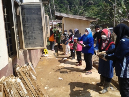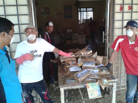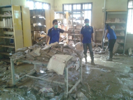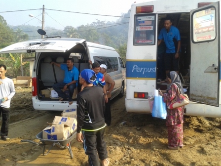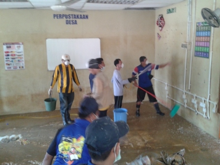 Misi bantuan mangsa banjir bersama ke Perpustakaan Desa Kampung Kemubu