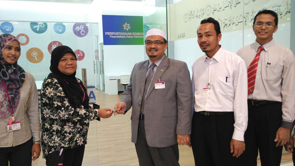 Pengerusi Perbadanan Perpustakaan Awam Kelantan YB. Dato' Dr. Mohamed Fadzli Bin Dato' Haji Hassan menerima kunci dari pihak AEON