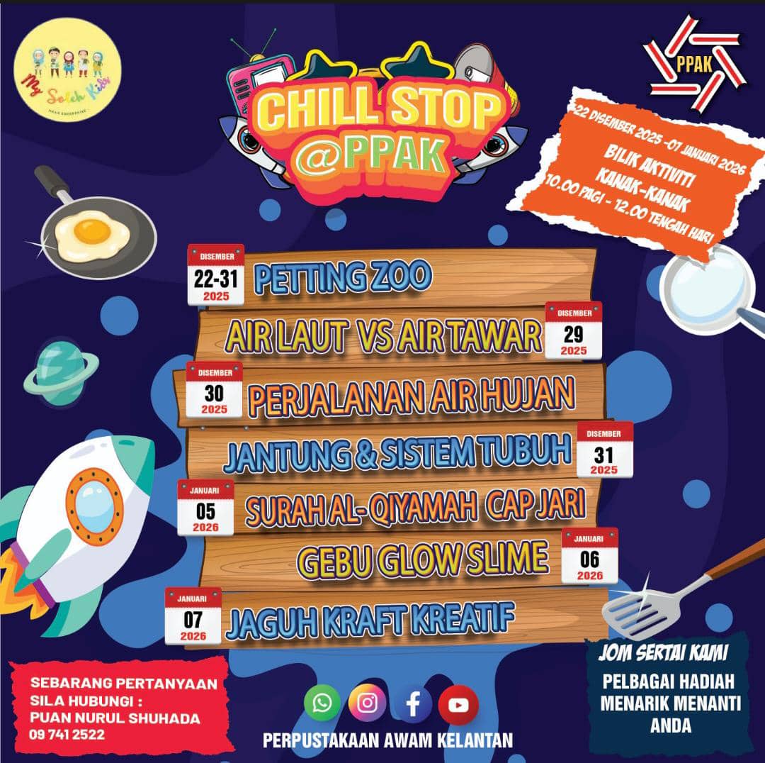 Aktiviti cuti sekolah Disember 2025 dan Januari 2026 - Chill Stop @PPAK